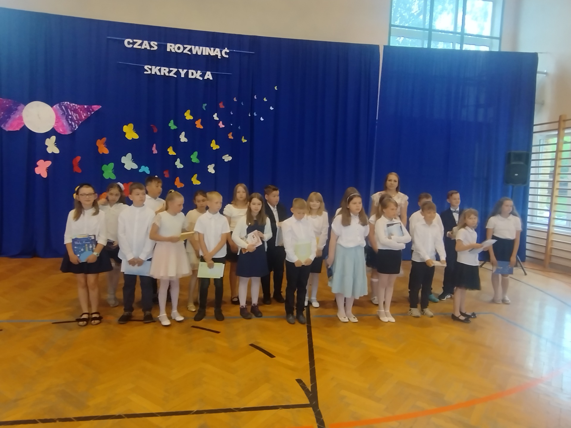 Wyróżnieni uczniowie z klasy 4b z wychowawczynią Joanną Wenderską