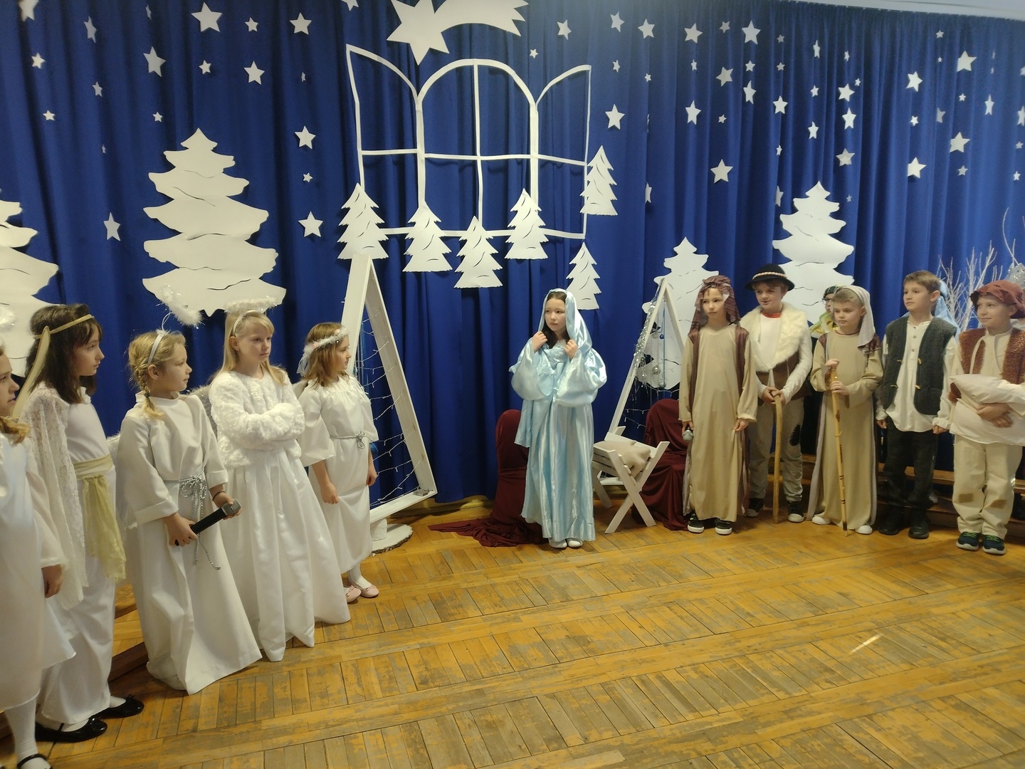 Tradycją naszej szkoły są coroczne jasełka przygotowywane przez uczniów pod opieką nauczycieli. Nie inaczej było w tym roku, dlatego 22 grudnia 2022 roku w pięknie udekorowanej sali gimnastycznej zebrali się Pani Dyrektor Bożena Delewska, nauczyciele, uczniowie oraz ich rodzice. Piękna scenografia wprowadziła zgromadzoną publiczność w świąteczny nastrój. Publiczność po raz kolejny mogła przeżyć historię Marii i Józefa. Całość przedstawienia pokazująca scenki z życia nowonarodzonego dzieciątka, pasterzy, mędrców, dzieci oraz aniołów przeplatana była kolędami i pastorałkami. Ogromne zaangażowanie młodych aktorów, nauczycieli i rodziców opłaciło się, gdyż przedstawienie wywarło duże wrażenie i poruszenie. Natomiast dzieci miały możliwość uczestniczenia w tradycji, a także możliwość zaprezentowania swoich umiejętności artystycznych. Na zakończenie zgromadzeni goście wysłuchali świątecznych życzeń Pani Dyrektor i w świątecznych nastrojach rozeszli się do sal, w których odbyły się klasowe spotkania wigilijne.