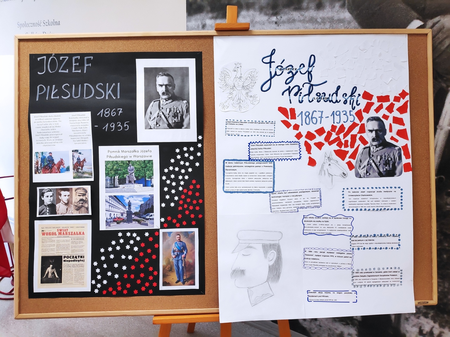 Nasza szkoła co roku obchodzi Święto Patrona - Marszałka Józefa Piłsudskiego. Uczniowie z tej okazji przygotowali plakaty o życiu i działalności Marszałka, a także naszkicowaliśmy jego portrety. Na jednej z tablic przywieszono informacje dotyczące etapów jego życia. Odbyły się również lekcje historyczne przybliżające sylwetkę Piłsudskiego. Marszałek w świadomości Polaków to głównie legionista, brygadier i Naczelnik Państwa. Warto pamiętać, że to też więzień Imperium Rosyjskiego i Cesarstwa Niemieckiego. Wódz, który poprowadził do zwycięstwa z Rosją Sowiecką w latach 1919- 1920. To mąż stanu i wielki patriota. Na wiadomość o jego śmierci w specjalnym orędziu Prezydent Rzeczypospolitej Polskiej Ignacy Mościcki napisał, że "Dał Polsce wolność, granice, moc i szacunek".