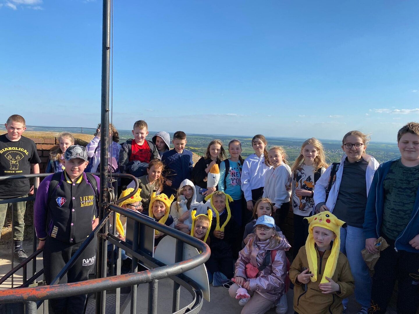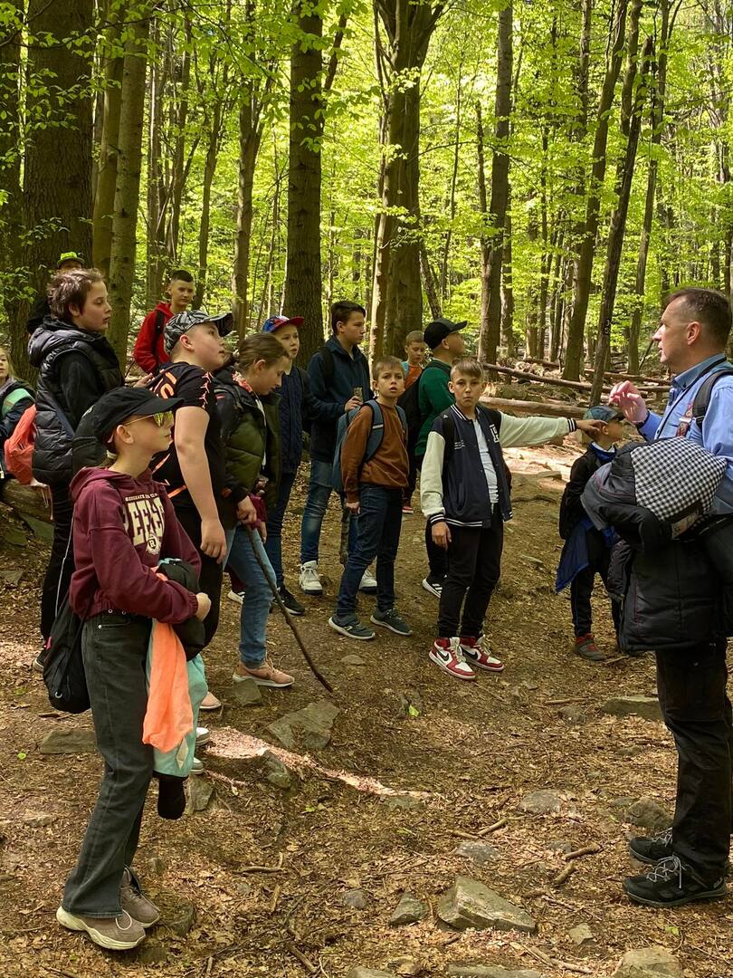 9 maja 2023 r. uczniowie klas czwartych udali się na wycieczkę w Góry Świętokrzyskie, które leżą po sąsiedzku z naszym województwem. Aura nam sprzyjała, było słonecznie i ciepło. Dobrze maszerowało się na Święty Krzyż – sanktuarium, które według legendy sięga swoim początkiem panowania Bolesława Chrobrego, a według źródeł – Bolesława Krzywoustego. Ten to władca sprowadził w to miejsce benedyktynów, których reguła zakonna głosiła: „Ora et labora” („Módl się i pracuj”). W muzeum poświęconym misjom zobaczyliśmy wiele pamiątek przywiezionych przez tych zakonników. Była nawet skóra ….. z pytona. W krypcie klasztornej dowiedzieliśmy się różnych ciekawostek związanych z życiem księcia Jeremiego Wiśniowieckiego, którego syn, Michał Korybut, został królem Polski. Wejście na wieżę kościelną okazało się nie lada wyzwaniem, ale było warto, bo widok z niej zapierał dech w piersiach.