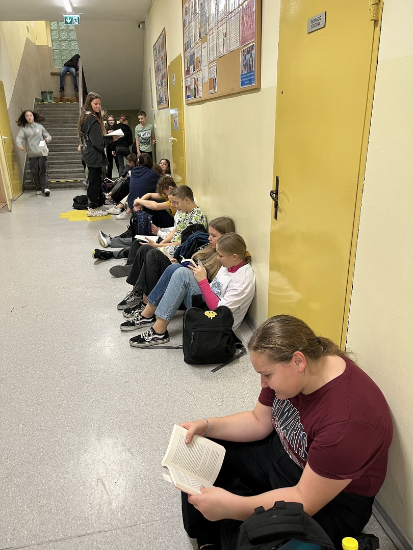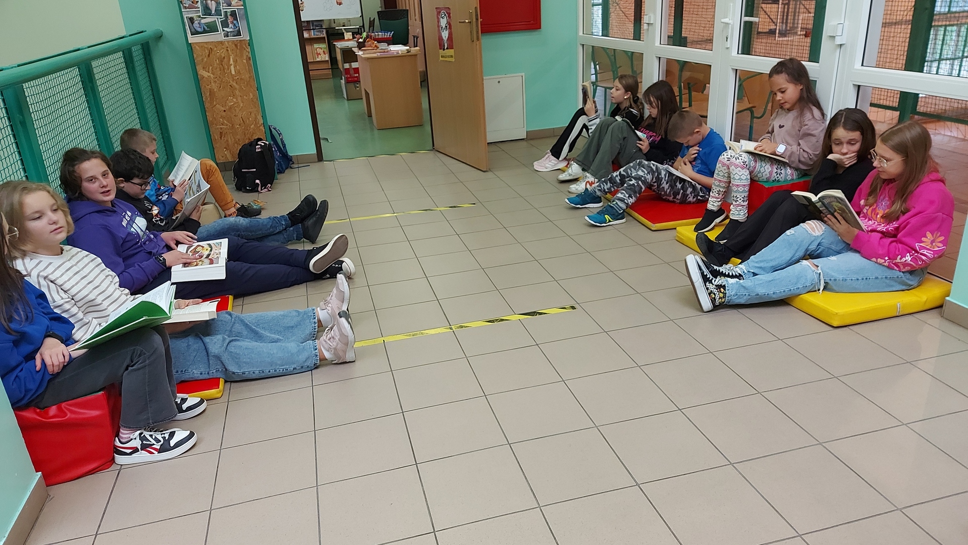 W miniony piątek 20 października włączyliśmy się w VIII edycję Ogólnopolskiej Akcji „Przerwa na czytanie” Wszystkie przerwy przeznaczyliśmy na ciche samodzielne czytanie, wyjątek stanowili uczniowie klas I, którym w wyznaczonych strefach głośno czytali starsi uczniowie lub nauczyciele. W akcji „Przerwa na czytanie” w naszej szkole brało udział 293 uczniów z klas I-VIII, 29 nauczycieli, 1 pracownik administracji, 6 pracowników obsługi i 2 pracowników stołówki szkolnej. W sumie 331 osób. Biorąc udział w akcji, włączyliśmy się również w bicie ubiegłorocznego rekordu czytania na przerwach. Główny organizator, którym jest Biblioteka Pedagogiczna Wojewódzkiego Ośrodka Metodycznego w Gorzowie Wielkopolskim, opublikuje wyniki tegorocznego rekordu w dniu 10 grudnia 2023 r. Do bicia rekordu w czytaniu na przerwach mogą przystąpić wszystkie placówki oświatowe każdego typu (znajdujące się w Polsce i szkoły polskojęzyczne na świecie) po uprzednim zgłoszeniu przez formularz organizatora w jednym dowolnie wybranym dniu października na wszystkich przerwach międzylekcyjnych. Akcja organizowana jest w ramach Międzynarodowego Miesiąca Bibliotek Szkolnych oraz kampanii społecznej „Cala Polska czyta dzieciom”.