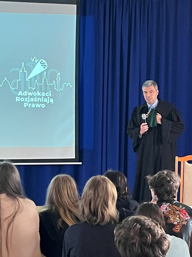 8 listopada w naszej szkole uczniowie klas starszych uczestniczyli w spotkaniu z prawnikiem p. Maciejem Krzemińskim, absolwentem naszej szkoły. Prowadzący przybliżył uczestnikom często pojawiający siętemat w przestrzeni medialnej dotyczący hejtu i stalkingu. Po części wykładowej uczniowie mieli możliwość zadawania indywidualnych pytań. Mamy nadzieję, że zorganizowane spotkanie przyczyni
