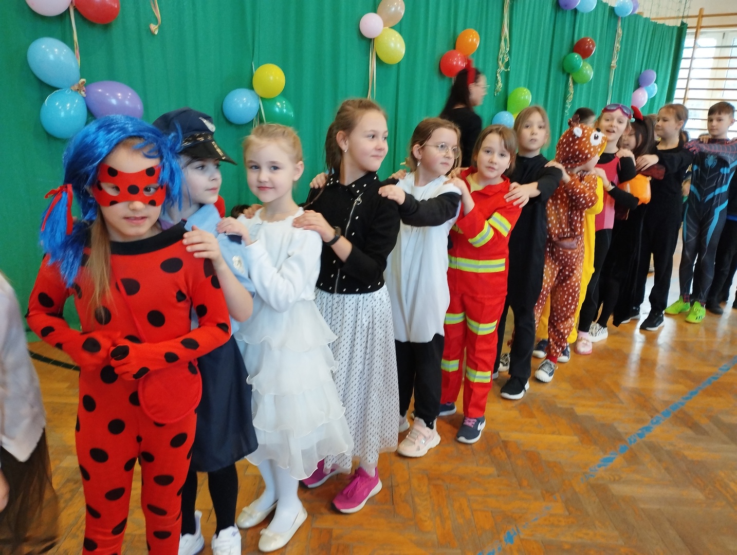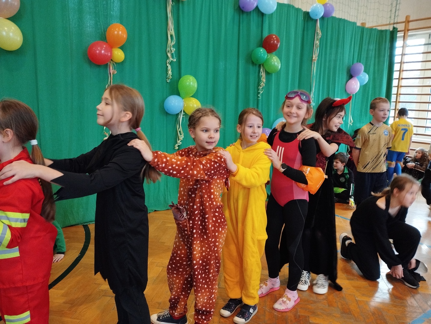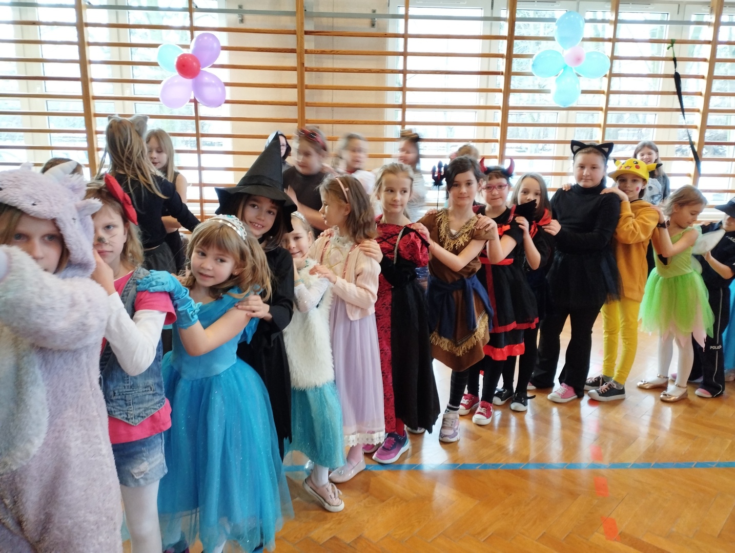We wtorek 23 stycznia odbył się długo oczekiwany przez uczniów bal karnawałowy. W tym dniu sala gimnastyczna zamieniła się w zaczarowaną krainę pełną wróżek, czarownic, czarodziejów, księżniczek, kowbojów, duchów i innych barwnych postaci z kreskówek i bajek. Przy dźwiękach skocznej muzyki i utworach znanych wykonawców dzieci mogły pobawić się pod okiem nauczycieli ze szkolnymi kolegami i koleżankami. Pląsy na parkiecie i wspólne zabawy wyczerpały siły tancerzy. Podczas krótkiej przerwy wszystkie dzieci udały się na słodki poczęstunek. Pyszne pączki zregenerowały siły i można było dalej się bawić.