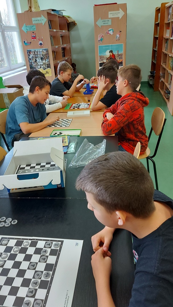 Każda pierwsza długa przerwa to w bibliotece szkolnej czas gier planszowych, karcianych i logicznych o charakterze edukacyjnym