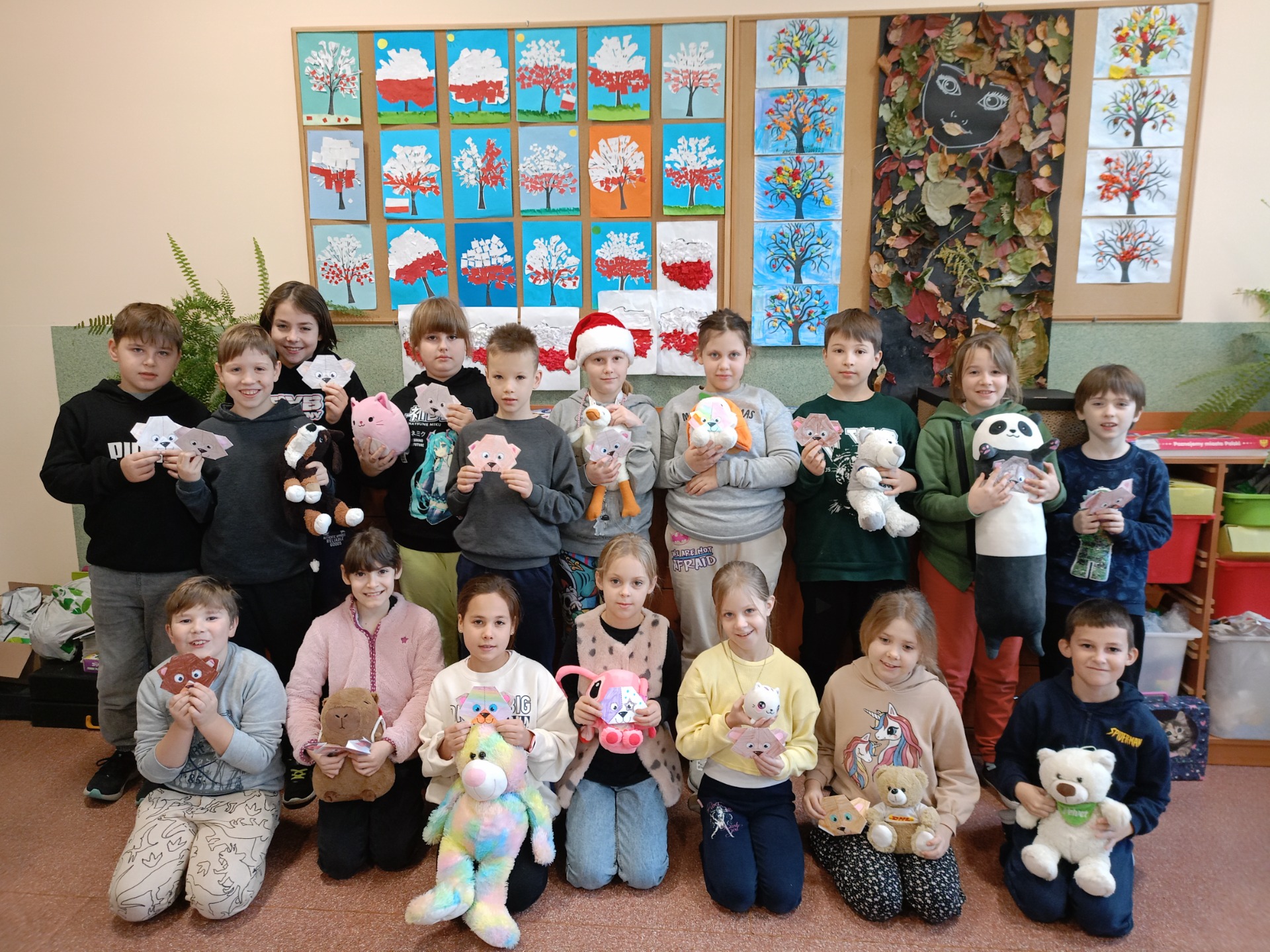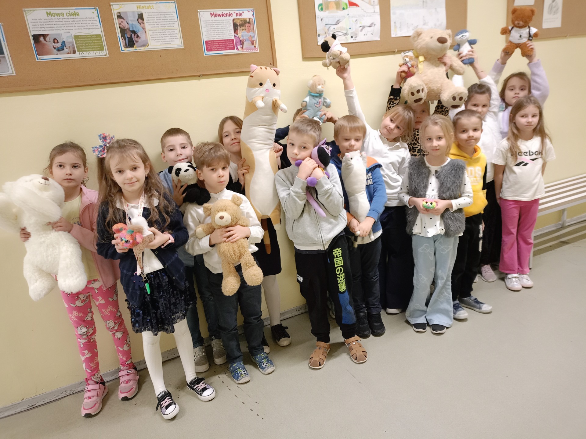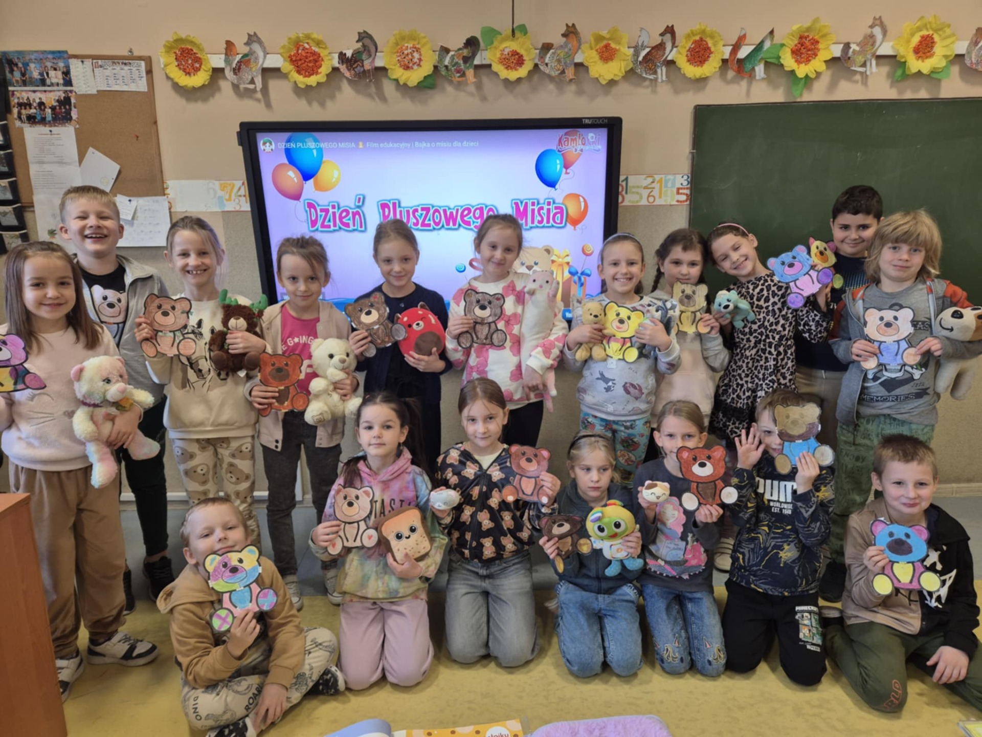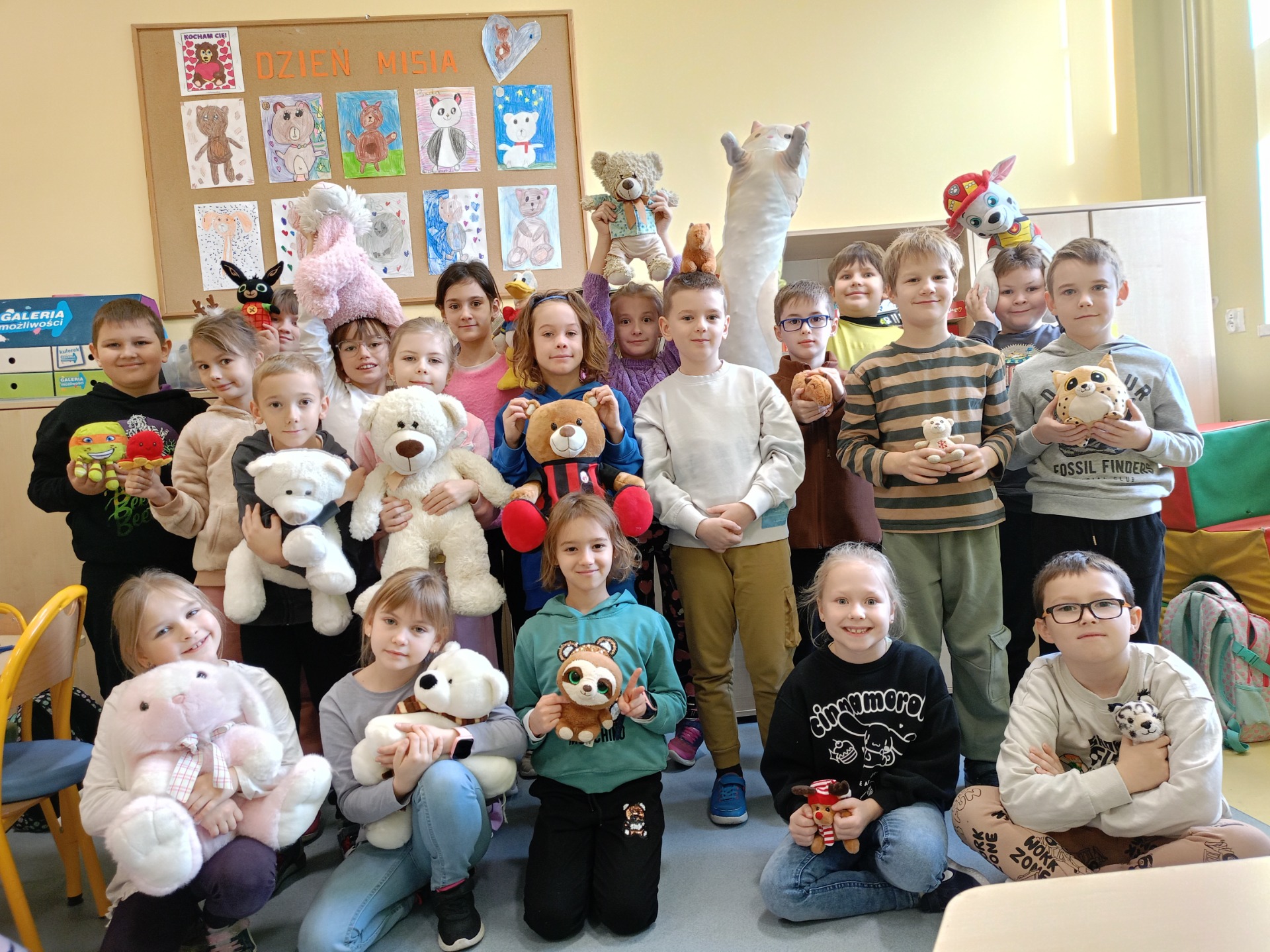 25 listopada 2024 roku uczniowie klas 1-3 uczestniczyli w obchodach Światowego Dnia Pluszowego Misia. Każde dziecko przyniosło do szkoły swojego milutkiego przyjaciela. Spotkały się misie małe i duże, brązowe, różowe i białe lecz łączyło je jedno - każdy był kochany, uroczy i wyjątkowy. W tym wesołym dniu czekało wiele atrakcji. Dzieci poznały historię Pluszowego Misia, uczestniczyły w zabawach ruchowych, zgadywankach, a także wykonywały prace plastyczne. Nie zabrakło również zdjęć z misiami.
