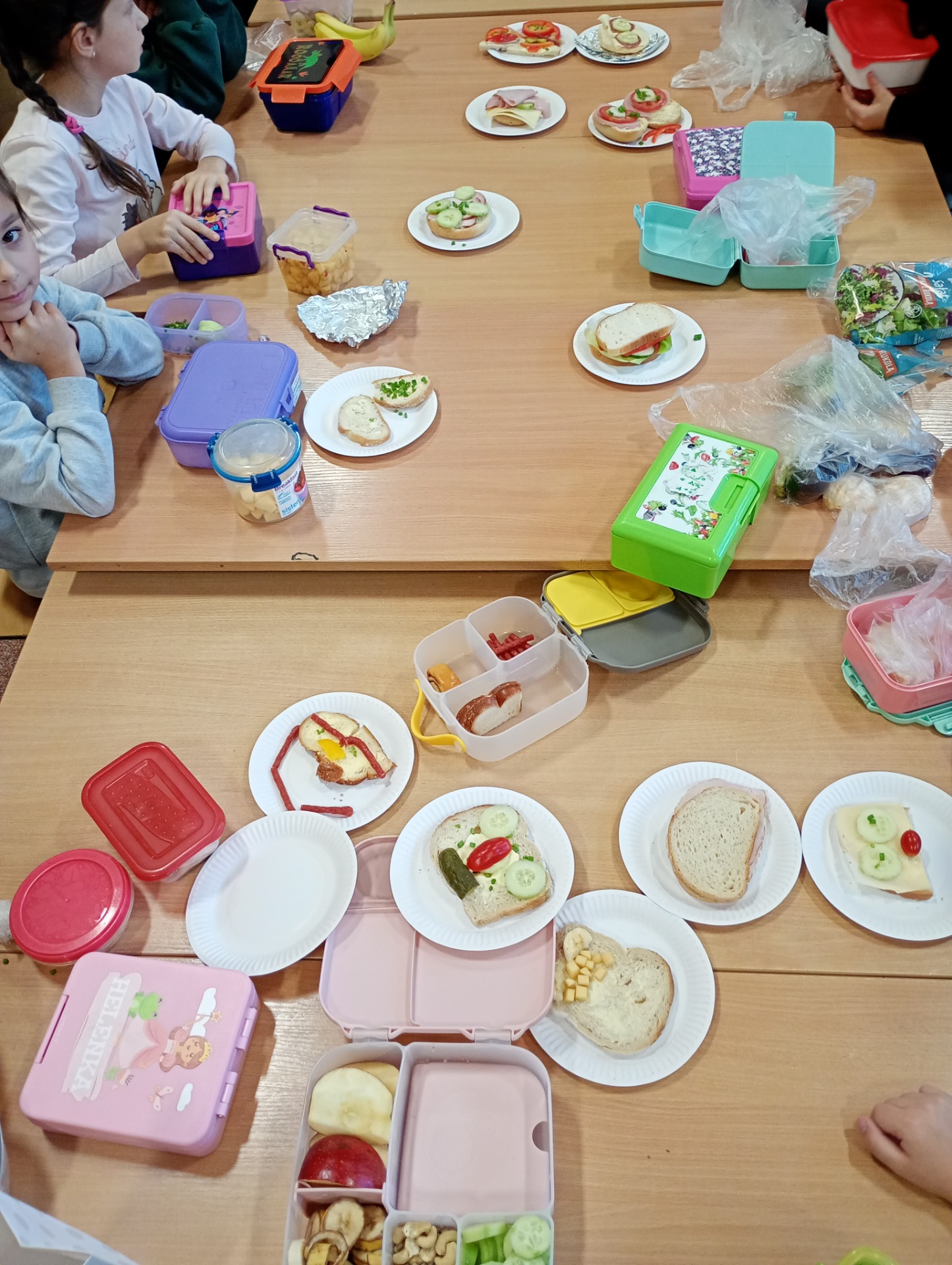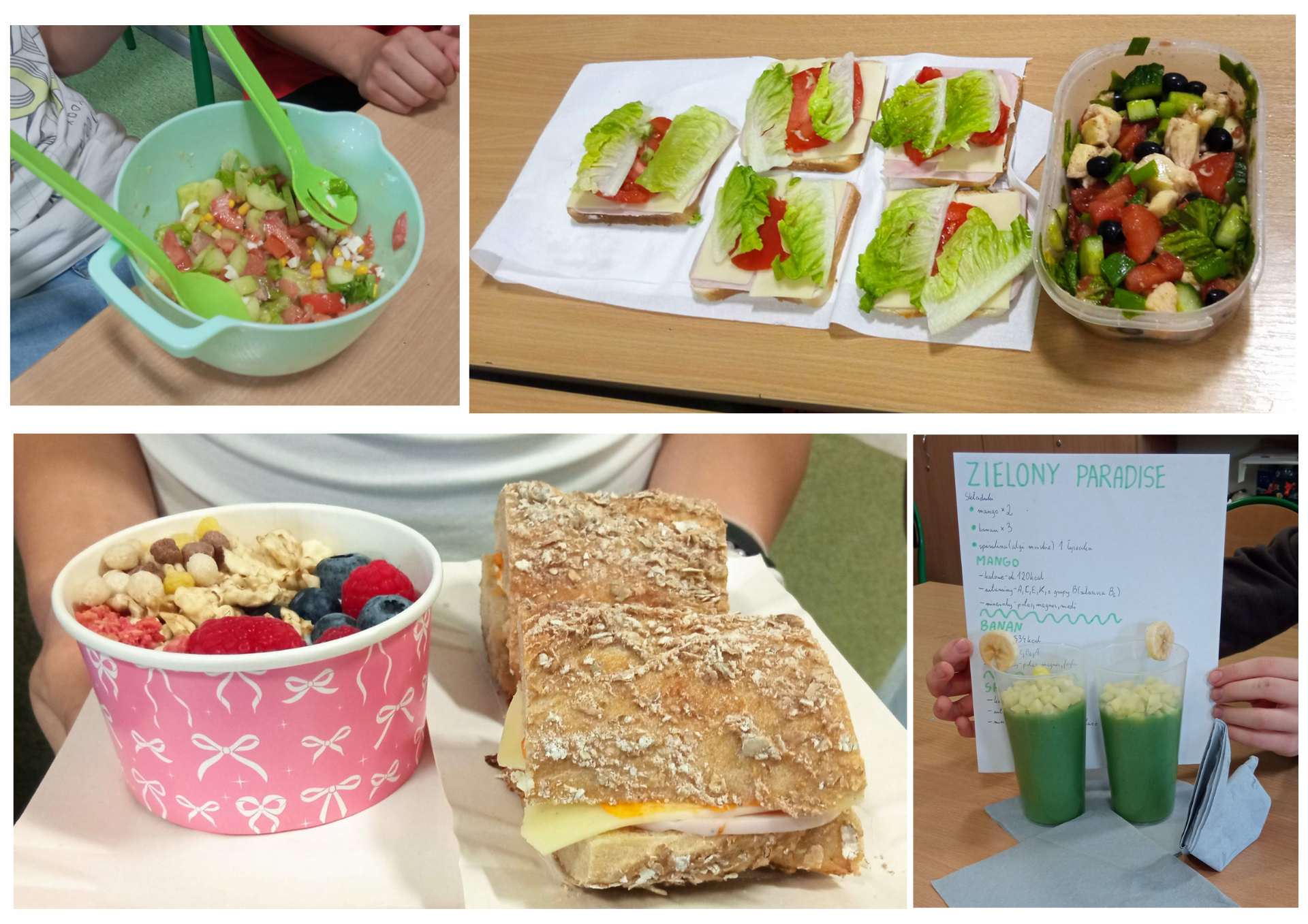 Uczniowie klas I–III, wspólnie z wychowawcami, przygotowali i spożyli najważniejszy posiłek dnia, ucząc się zasad zdrowego odżywiania. Uczniowie klas IV przygotowywali swoje śniadania na zajęciach techniki. Do akcji włączyły się również klasy VII, które na lekcji biologii tworzyły propozycje zdrowego pierwszego śniadania. Każda grupa prezentowała swój posiłek, omawiając jego podstawowy skład - zawartość węglowodanów, białek, tłuszczów, witamin, czyli składników niezbędnych do prawidłowego funkcjonowania organizmu.